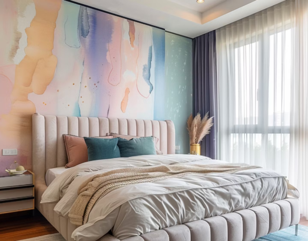 Contemporary Kids Bedroom Design with Colorful Wallpaper