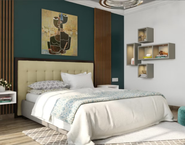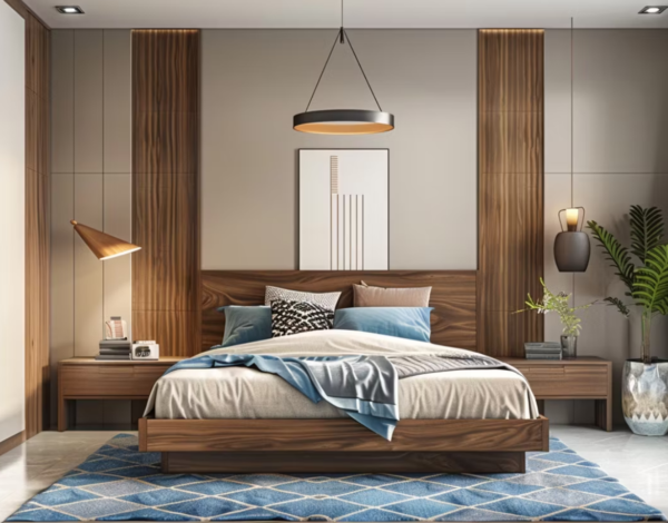 Modern Master Bedroom Design with King Bed and Wooden Panels