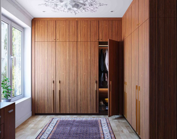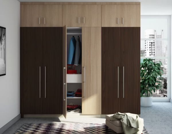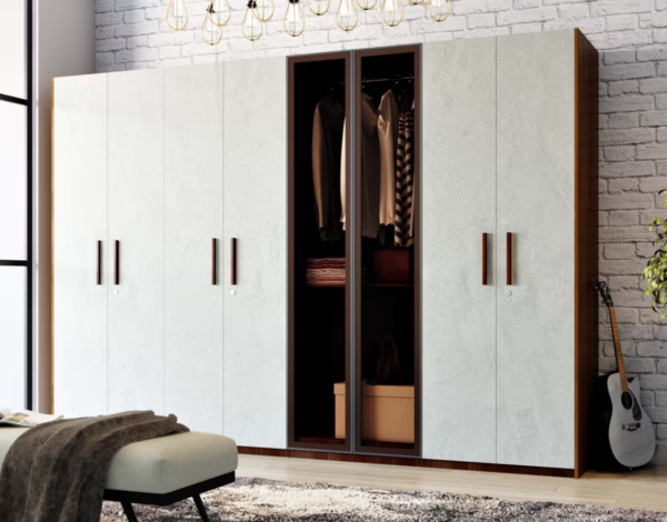 Modern 6 Door Swing Wardrobe Design in Walnut Colour